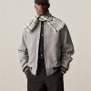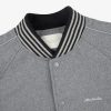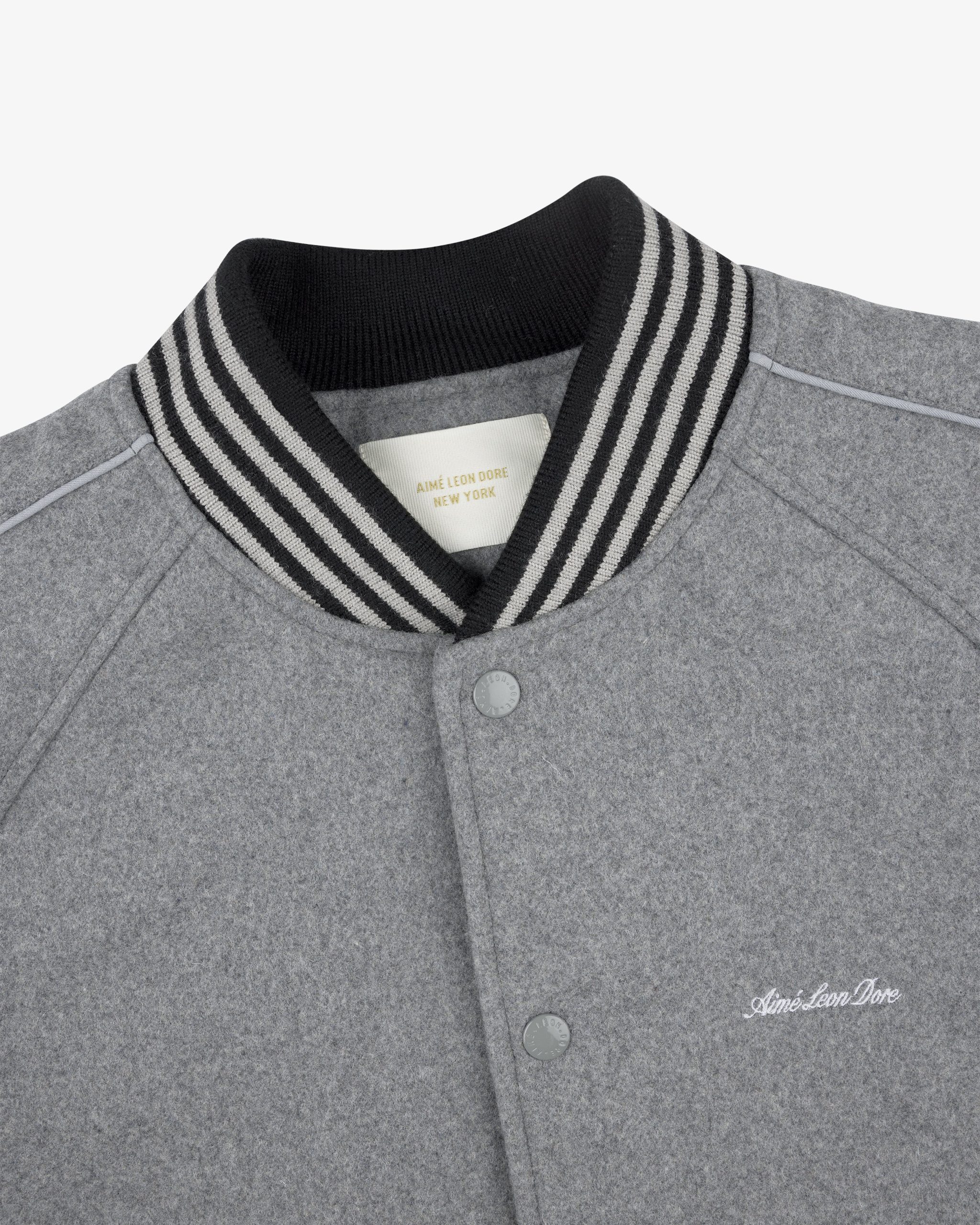 - • Grey varsity jacket