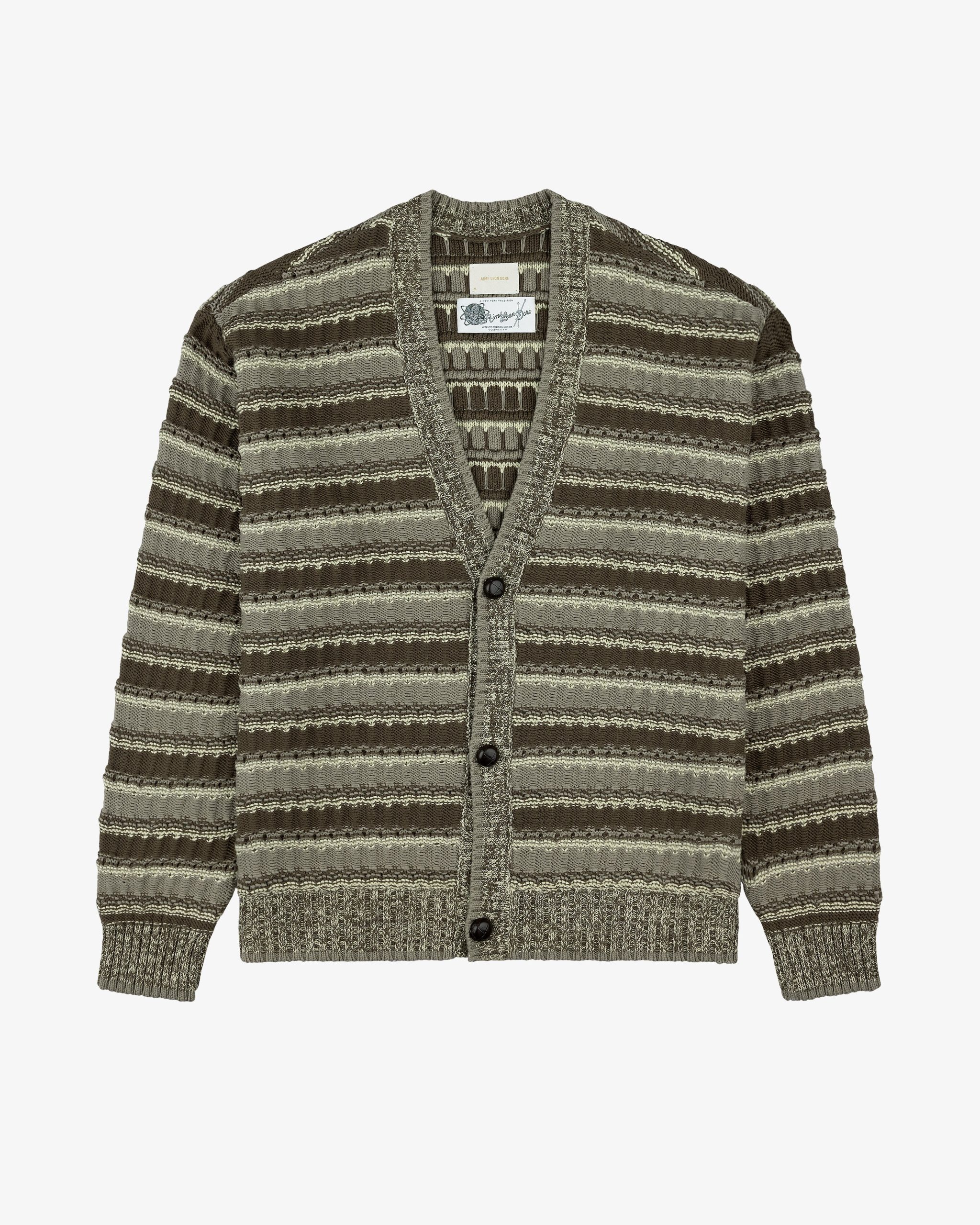 Aimé Leon Dore Men’s Jacquard Striped Cardigan | Brown Multi
