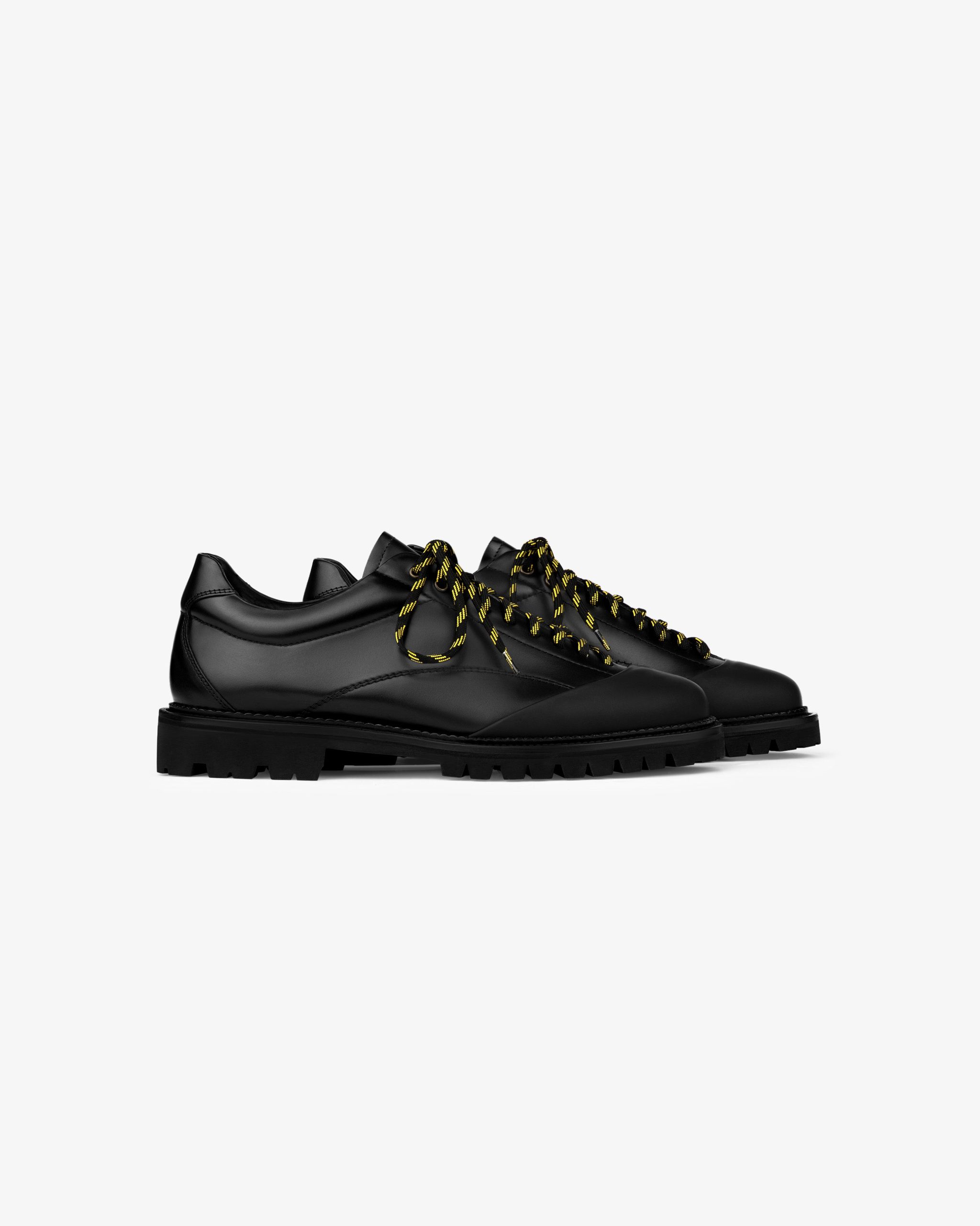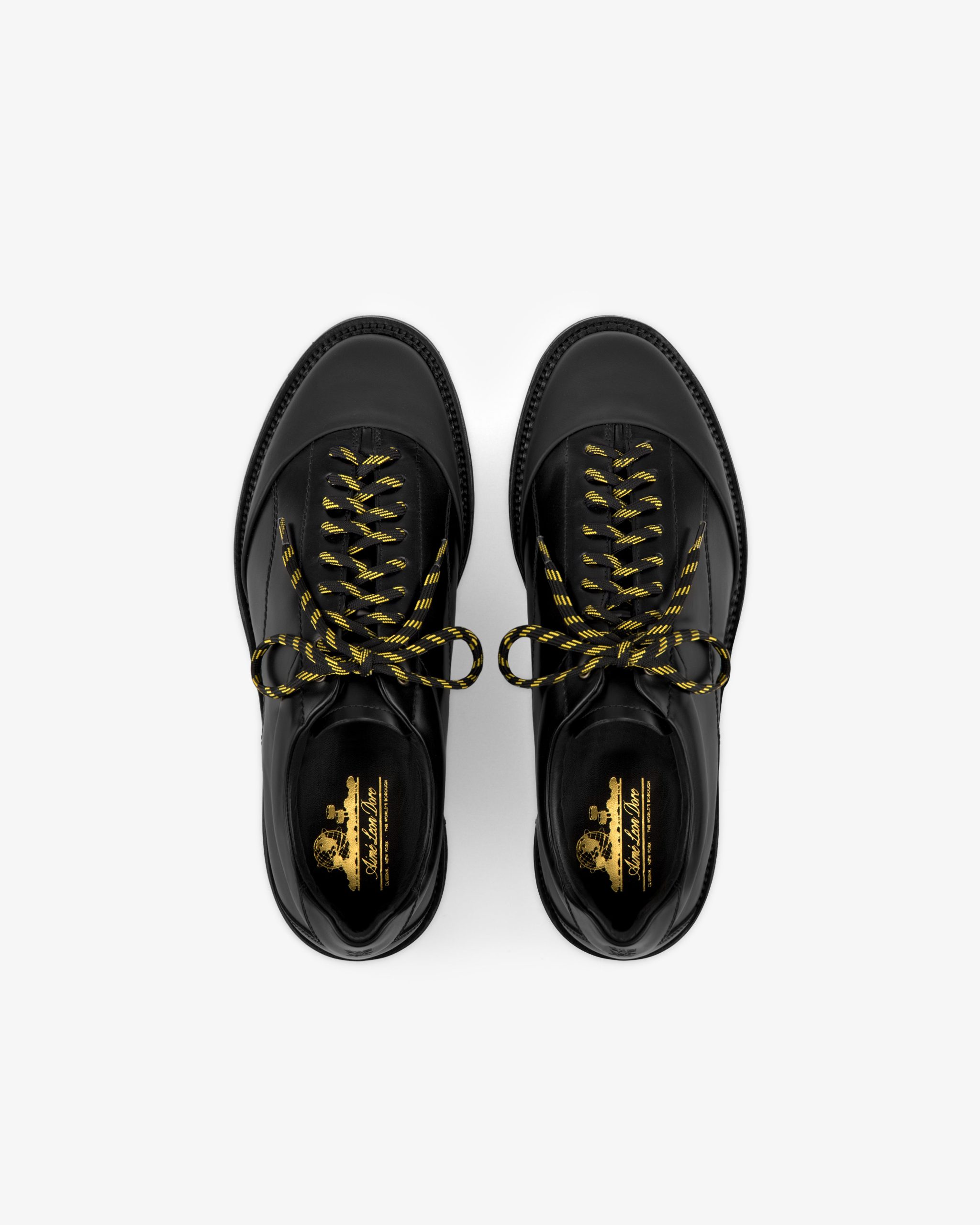 - • Black leather derby