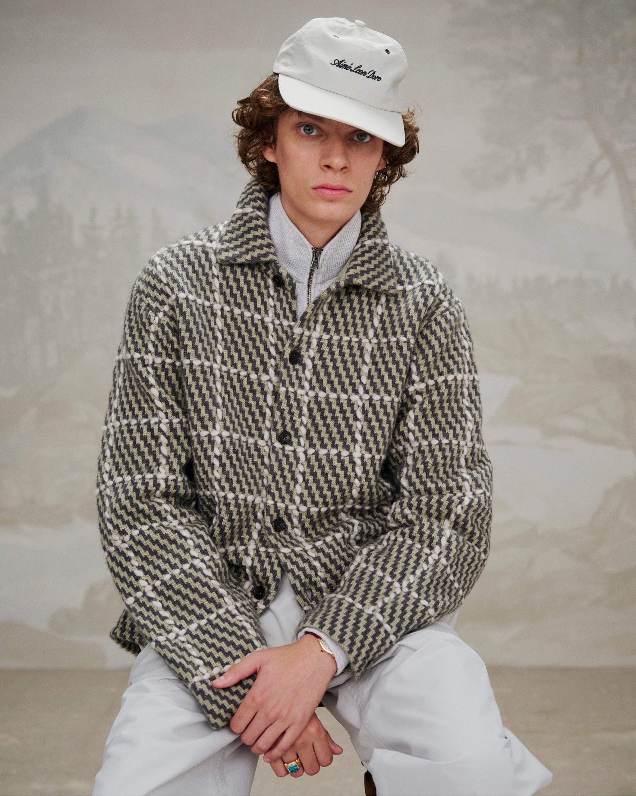 Aimé Leon Dore Men’s Plaid Hand-knit Overshirt | Stone Plaid