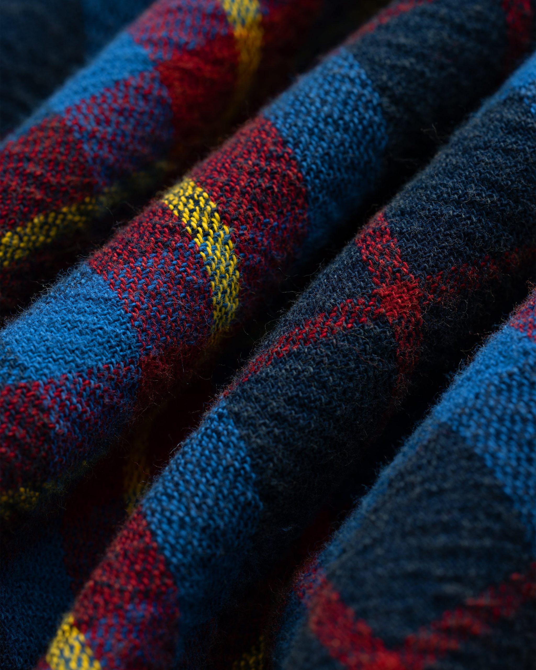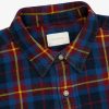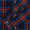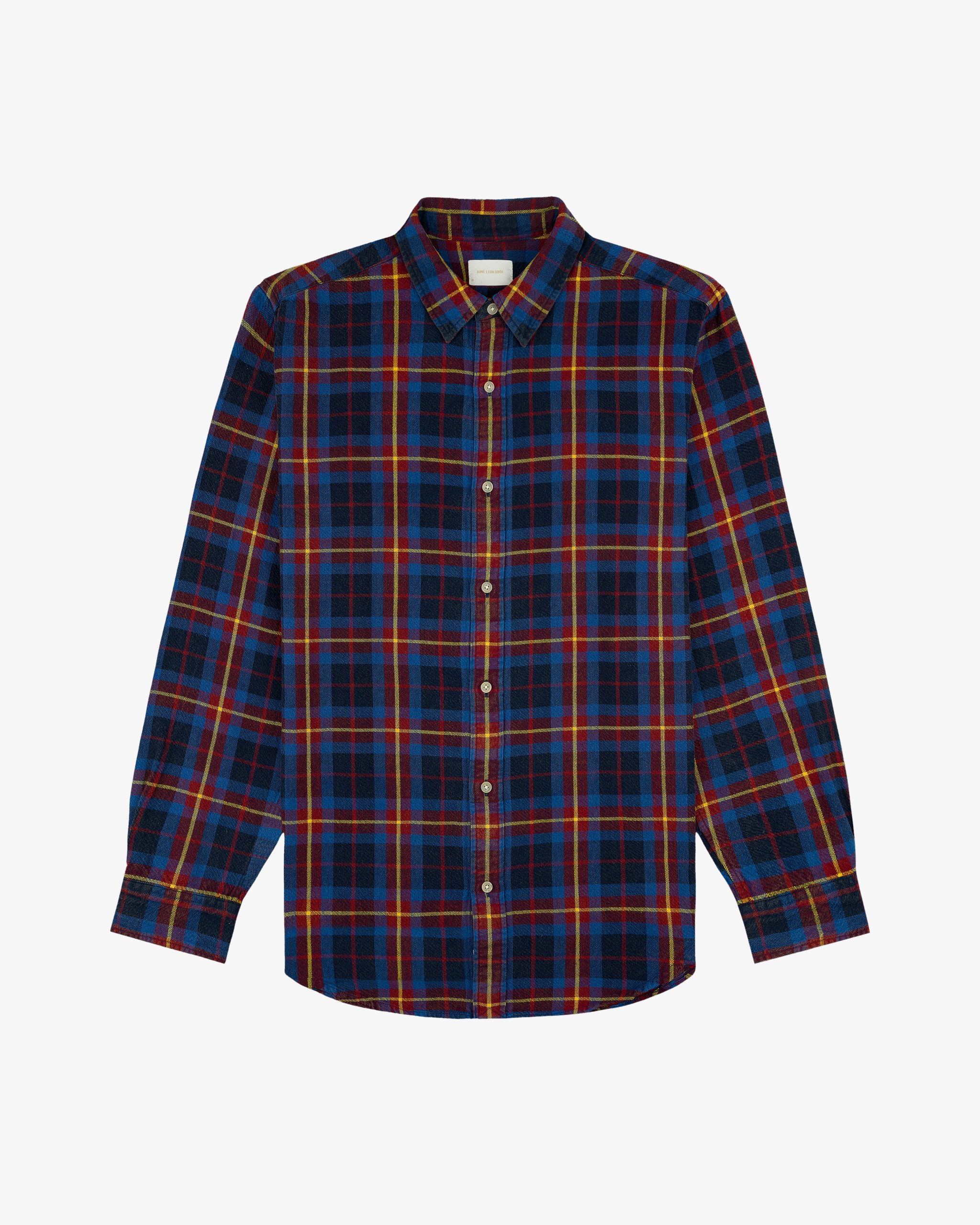 - • Blue plaid shirt