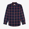 - • Blue plaid shirt