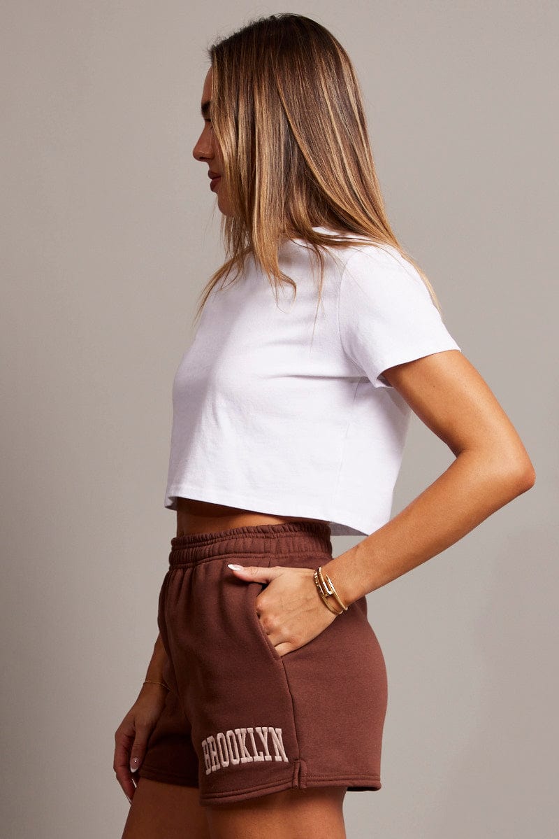 Editor’s Pick Brown Track Shorts High Rise Elastic Waist Ally – Limited Availability!