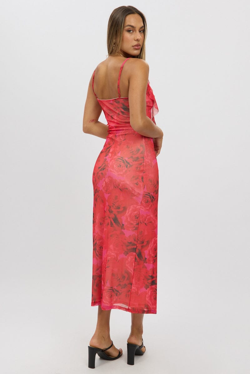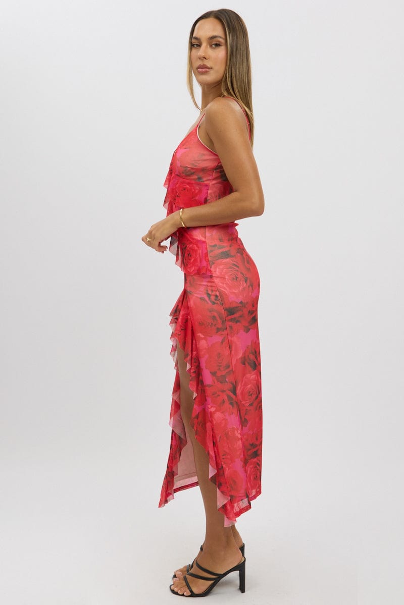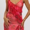 Exclusive Red Floral Bodycon Dress Ruffle Mesh Ally – Today Only!